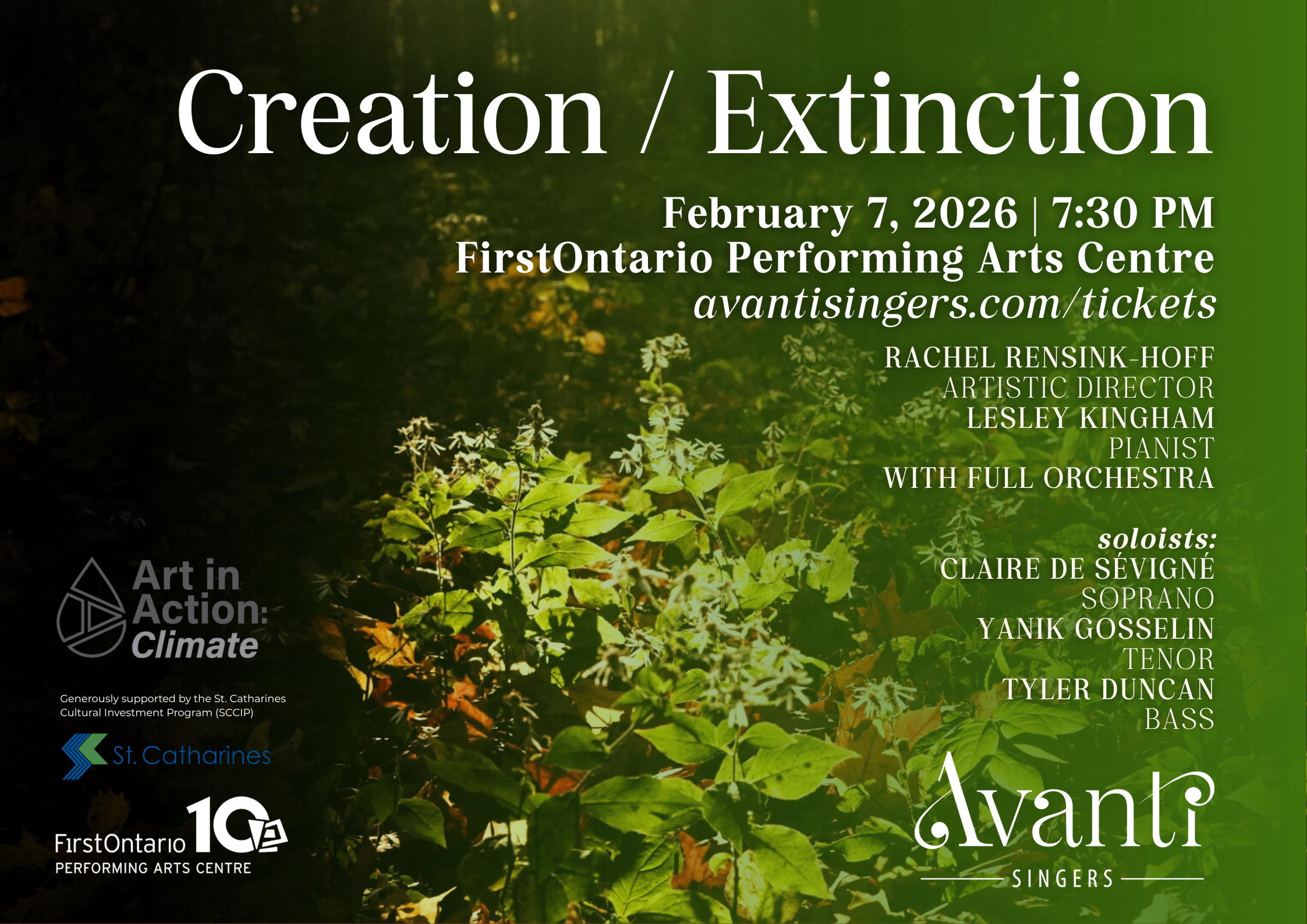 Part of the FirstOntario Performing Arts Centre’s 2026 Art in Action Climate Series, this program explores both the beauty and fragility of nature through Haydn’s The Creation and excerpts from The Lost Birds by Christopher Tin.